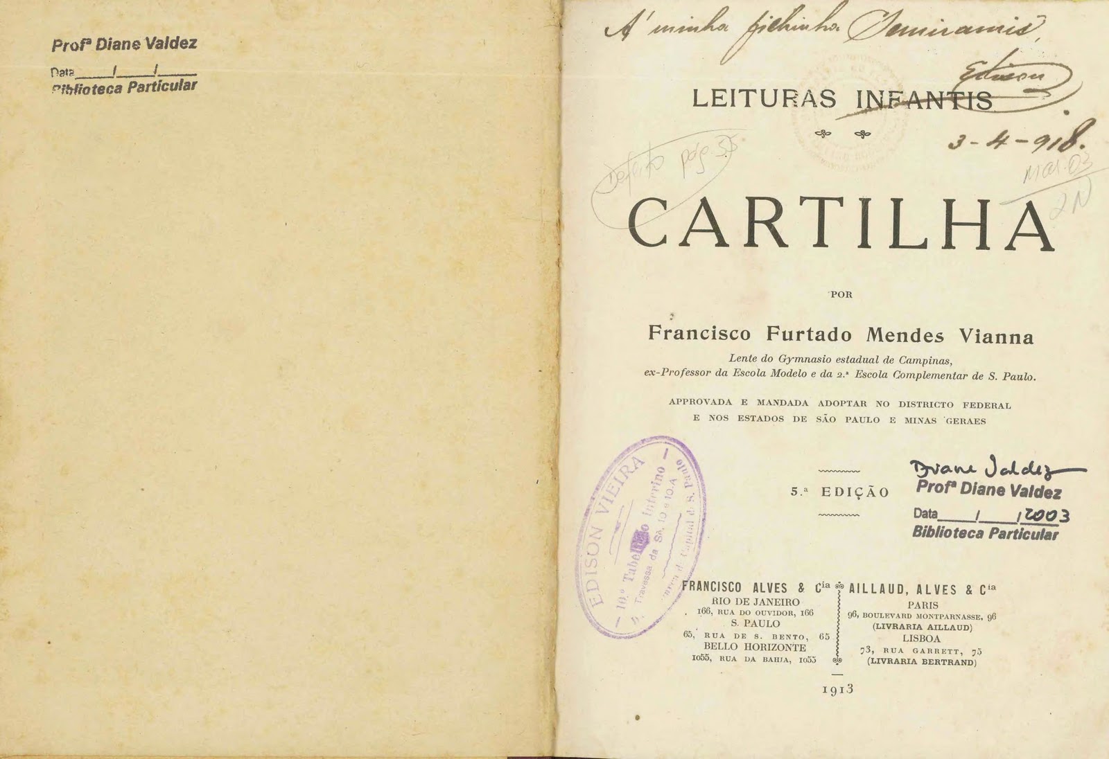 Cartilha. Leituras Infantis. Francisco Viana 48.e. Rio de Janeiro: Livraria Francisco Alves, 1945. [1a. edição 1895. A cartilha e os livros de leitura de Francisco Viana, formado na Escola Normal de São Paulo, foram muito populares nas escolas.]