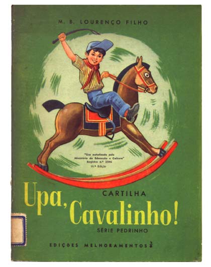 Lourenço Filho, ilustrações de Oswaldo Storni12.e. São Paulo: Melhoramentos, 1970. [A 1a. edição é de 1957, cuja tiragem foi de 1.000.000 de exemplares. Até 1970, data da última edição, a 12a., foram produzidos 2.070.000 exemplares. Há também um Guia do Mestre para a cartilha Upa, Cavalinho! São Paulo: Melhoramentos, 1956. [De 1956 a 1957 foram publicadas quatro edições desse guia, com a tiragem de 120.000 exemplares.]